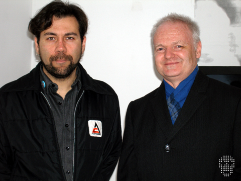 - photo opp w/ occasional collaborator Dermot Wilson (we toured Western Canada with a performance called Quirk back in 1998, ask one of us about Lethbridge some time... Rampike published a feature on the Quirk thing for a technology issue (Vol.10 No.1, 1998 / ISSN 0711-7647 ) - after the opening we go out for Ethiopian food, chat about old times and discuss new endeavours... happy to know that Dermot's 'Fallout 4' sound project is still in the works (the guy sure knows how to secure project funding!); looks like I'll be heading up to North Bay to participate in F4 in March 2006... playing at manipulating recorded sounds made by moving ice masses. ( Another cool project that Wilson organizes up there that involves capitalizing on the cold weather is Ice Follies ) • |